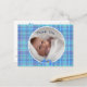 Stork pojke, fotopojke med personlig meddelande om olika nyanser av blått rand i bakgrunden