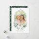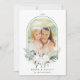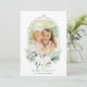 Elegant jul | Helgdag har ett foto i ett bågat ram, en bukett av bomullsblommor med löv och ett vintergrönt mönster på baksidan. Om du vill ha en mer avancerad anpassning av den här designen klickar du på BLUE DESIGN VERKTYG.