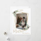 Modern, elegant julkort, med ett faux guld-geometriskt foto ram. Dekorerad med gräs och koner. Anpassa och lägg till din familj namn. God jul skrivet med ett stil-skript som hanteras med trendig.