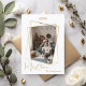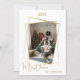 Modern, elegant julkort, med ett faux guld-geometriskt foto ram. Anpassa och lägg till din familj namn. God jul skrivet med ett stil-skript som hanteras med trendig. Tillbaka: lägg till anteckningen och namnen.