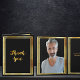 En milstolpe på födelsedagen tack för ditt kort med två egna foton. En chic svart bakgrund färg och en faux guld ram. På framsidan finns ett handskript i stil och texten: Tack. Inuti: Mall för tackkort- och namn-mallen för ditt första foto. Tillbaka: Ditt andra foto.