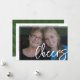 FRONT DESIGN: En julklapp - jägare - Julhälsningar ovanpå fotot i ett stort trendig-skript. Fotot är utanför mitten och familjen namnteckning banden runt det vita gräns. En tunn vit gräns-accent ingår också. — BACK DESIGN: Bakgrundsdesignen omfattar ett schevron mönster i oliv grönt skuggor. Färg kan ändras i det avancerade designområdet.