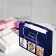 För en 50:e (eller någon annan ålder) födelsedag. En klassisk marin blå bakgrund, blå färg är ojämn. Anpassa och lägg till 3 av dina egna foton, ett datum, namn och 50 år. Vit text. Namn är skrivet med ett modernt handskript i stil.