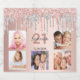 För en 21-årsdag, party, firar hennes liv med en kollage av fem egna foton. Anpassa och lägg till namn, 21 år och ett datum. Födelsedatum eller datum för party. Ro guld och mörk grått färgad brev. Trendig ro guld färgad med silver som dekoreras med faux glitter droppar, färgdroppstift i rosa, ro guld och.