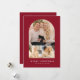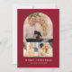 Modern helgdag-fotokort med tre av dina foton som är ordnade i en bågformad rutnätslayout. Anpassa framsidan av multifotokortet med anpassningsbarna hälsning och namn i med vit helgdag med kranbärsbakgrund. Kortet återgår till en subtil kranbär och vit prick mönster.
