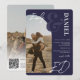 En modern, djärv bröllopsinbjudan för namn med egna namn med ett handskrivet kalligrafi och serif-teckensnitt, 2 namn , 2 stilar. All text, namn och färg i bakgrunden är anpassade med 2 foton och bågformade foton med marktblått. En enkel och minimalistisk inbjudan, lägg till din QR-kod för osa, detaljer och allt i ett inbjudan.