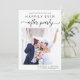 Modern spara datum meddelande för din post-elopement- eller privat bröllopsmottagning med ditt foto: "Spara datum för vår lyckligtvis allt efter Party" i en blandning av enkel typografi och ett trendig-skript med dekorationer och ditt första namn, mottagningsdatum och -läge. På motsatt sida kan du ge mer information och lägga till namn i ett namnteckning skript.