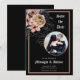 Vackert, spara datumkortet med guld-cirkel och beige och rosa blommigt med ängar, kvistar och bär på svart bakgrund. Typografi av Götetiska blackletter läggs till i designen. Anpassa med ditt eget foto och bröllop-datum och ställe. Se samordna saker i vår butik eller kontakta oss om du vill ha fler artiklar.