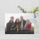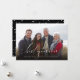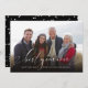 Det här nyårsfotokortet har ord "bästa helgdag någonsin" i ett vitt skript. Bilden visas bakom. Baksidan är en svart och vit mönster.