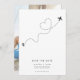 Förhindra resan i kärlek med vårt fotot på flygplansdestinationsbröllopet Spara datumet. Framsidan har ett enkelt svart och vitt flygplan med en hjärtflygdesign från väg, som symboliserar din resa till ett destinationsbröllop. På baksidan tillför ett omhuldat foto av paret en personlig och hjärtfull beröring. Perfekt för att bjuda in dina kära för att gå med dig på detta speciella äventyr och markera deras kalendrar för ditt minnesvärda målbröllop!