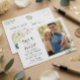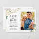 Ivory White Blommigt Guld Photo Save Date Postcard