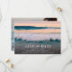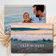 Låt dina gäster känna värmen i kärlek (och solsken!) med det här bröllopsbröllopet Spara datumet. Framsidan har en hisnande oceansolnedgång - mjukt vågar, rosa himmel, och den där serene, drömmande glöd som bara en strandkväll kan ge. Vänd över den om du vill visa ditt favoritfoto som ett par och lägga till en personlig och hjärtfull beröring till meddelandet. Perfekt för tropiska getingar, havsbottnar eller par som planerar en fullt i firande av skönhet, värme och nöd.