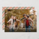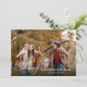 Det här moderna minimikortet för Thanksgiving av bilder ger ett vågrät som fyller på kortets framsida. Hälsning "Happy thanksgiving" visas i vitt ovanpå fotot, och ord "lycklig" markeras i det moderna elegantens skript. Kortets baksida ger plats för ett annat foto, anpassningsbar för ett personligt meddelande, och accentueras som en mysigt höst som står gräns.