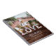 Lägg till 4 par-foton till det här attraktiva bröllop, möhippa-presentobjektet för att skapa en speciell nyckelgåva från extra. En rustik trälogg med stilen "kärlek" och lilaska blommor med en träbakgrund som gör att elegantens anpassningsbar blir en rustik vibe.