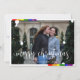 HBT-God jul-kort med foton, regnbågspenseldrag och God jul i ett söt vitt kalligrafiskt skript.
