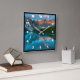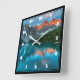 En klocka med ett vackert foto med ett vackert bergsområde, grått och rost färg. En skog med grönt omger en lugn sjö. En lugn och fredlig bild.
