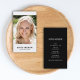 Modern social-media-affärskort med ditt foto mot en vit bakgrund på framsidan och en svart färg baksida. Affärskortet i social är idealiskt för olika yrken, som konstnären i agent, fotografen, skådespelaren, modellen, bloggarn, vloggaren osv., som vill att människor som de träffar i verkligheten ska veta hur de hittar dem och hur de arbetar och sorterar online och på social-medier. Anpassa den genom att ersätta platshållartexten och ersätta exemplet/platshållarfotot med ett eget foto. Om du vill ha fler alternativ som att ändra teckensnittet och det är storlekt/färg eller mellanrummet mellan brev klickar du på knappen "Anpassa". *Observera att Zazzle Watermark som visas i zoomförhandsvisningen INTE visas på den färdiga tryckta produkten. © Rosewood and Citrus