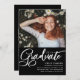Mall för inbjudan till elegant och modern studentfest till högskola eller högskola studenter! Teckensnittet typografi säger "student" i det moderna skriptteckensnittet mot den svarta bakgrunden. Anpassa den här produkten genom att lägga till informationen om student namn, skolan, party och ditt eget foto. På baksidan finns ett annat bild med ett enkelt budskap om era prestationer, tacksamhet och det som händer dig nu när du tar examen.
