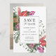 Tropisk Bröllop spara datum med ett gräns av färgstarka tropiska blommor och grönska. Anpassa med din information eller klicka på "Klicka för att anpassa ytterligare" för att redigera teckensnittet stilar, storlekt och färg. Lägg till fotot på baksidan. Matchande objekt i Tropical Collection i Adore Papper Co. Zazzle-butiken.