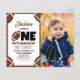 Presentera den charmerande moderna fotbollsbudgeten foto 1:a födelsedagsinbjudan! Denna vackra inbjudan blandar kärlek med den amerikanska fotbollen med en contemporary och en lekfull vision. Den bruna färg och den berömvärda illustrationen av en liten nybörjarfotbollsspelare fångar omedelbart barn. Typografin, som innehåller en blandning av lekfull typsnitt och en personlig foto av baby, ger en inslag av roligt och upphetsning. Idealisk för idrottsälskande föräldrar som vill att deras barn ska bli en stjärnorna, är inbjudan en modern och söt appell som skapar ett oförglömligt och glädjande födelsedagsfirande centrerat kring deras favoritsport. Skaffa redo för en sportetisk extravaganza-fullt av skratt och glädje! Missa inte den här amerikanska temat för fotboll för att starta din lilla nybörjares första födelsedagsfest utan att få tag i fickan.