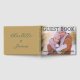 Den här gästen bok i bröllop i guld har ett foto av paret lycklig, parat med mörk grönt skript i elegant och med fetstil. Om du vill redigera texten och ändra fotot klickar du på knappen Anpassa.