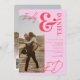 Foton med fet namn-skript, bågretro rosa bröllop inbjudningar