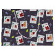 Giftpåse med ett tryckt dokument som har olika foton med Jultomten ge presenter gör olika djur - björn, räv, kanin, fågel.