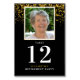 Det här bordsnumret är designat för pension party. Ett fyrkantigt foto visas överst med guld glitter konetti på en svart bakgrund och siffran i stor vit text. Med anpassningsbar kan du anpassa med namn och händelse.