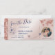 Boardingkortet Biljett Guld Flygplan vid destinationsbäckenet Spara datumet med hjärta och flygplan med världskartan glitter ro guld. Lägg till ditt foto