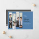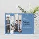 Dessa moderna 7-tums x 5-tums tillkännagivande för studenten-platshållare för fyra unika beskurna foton som subtilt visar dina favoritfoton på en koboltblå bakgrund med elfenbensfärgade och svarta bokstäver. Kortets baksida är svart med elfenbensformad linjer.