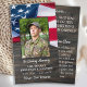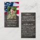 Amerikanskt Flagga Memorial Milial Beyer Card. Det här militära minneskortet för böner har en amerikansk Flagga på mörkens träbakgrund. Front "In Loving Memory" "Heroes Live Forever". Anpassa det här militära begravningskortet med dina kära foto, namn & data och känslor. Bakåtcitat: "En Hero är...En person som har gett sitt liv till något underbarare än sig själv och bön "Vi håller er nära". ... om du vill ha en design med en specifik dikt annan än dig själv. Detta amerikanska bönkort är en välkänd keepé, hedra en fallit soldat, militärbegravningstjänster och veteranminnesgudstjänst eller firande i livet. I Loving Memory Military Memorial American Flagga Prayer Cards. COPYRIGHT © 2020 Judy Burrows, Black Hund Art - Med alla Höger reserverade. Militärt memorial Fallen Soldier Prayer-kort