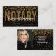 Ett guld faux glitter över svarta sätter av bakgrunden till detta notarie designade affärskort med namn och rubrik på framsidan. Baksidan innehåller en samordnad design och färg med fält för affärsinformation plus ett platshållarfoto. Byt ut platshållarfotot mot ditt. Fyll i fälten eller klicka på anpassa för att välja det teckensnitt som du vill använda stil, storlekt och färg. OBSERVERA att ockupationen endast innehåller ett begränsadt antal tecken i en rad.