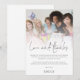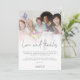 Modernt fotoöverlägg Bröllopsfest manus Kärlek och Tack. En informell uppsättning typografi i svart för huvudrubriken Kärlek och Tack som kompletterar resten av texten som du enkelt kan anpassa. Ersätt provfotot med ditt eget favoritfoto från tillfället.