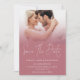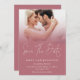 Modern Photo Overlay QR Code Ro Guld White Script Bröllop. Med en QR-kod på webbplatsen bröllop på baksidan så att dina gäster enkelt kan besöka webbplatsen för bröllop. Din QR-kod genereras automatiskt för att uppdatera exempelkoden i designen när du helt enkelt ändrar exempelwebbadressen i mallen med din egen webbadress för bröllop. Spara Datumet finns i ett skript för uppsättningen av snyggtar. Ersätt exempelfotot med din egen favorit och anpassa resten av texten.