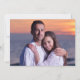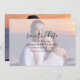 Det här söt skriptet med fotoövertäckning av bröllop spara datum är både modernt och snyggt. Vit övertäckning på fotot med dina detaljer på framsidan och färg på baksidan.
