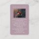 Photo Prayer Card för vintage Lila Blommigt. Anpassa med foto och meddelanden. Sköt det här krävande bönekortet, ett helig-tecken på tro och hängivenhet. Vänd på kortet och anpassa ditt bönekort ytterligare. Med ett dedikerat utrymme kan du skriva in ett hjärtligt budskap - en bön om tacksamhet, en framställning om vägledning eller en kärleksfull hågkomst av ett omhuldat älskat barn. Lägg till ett uppskattat foto för att skapa en omhuldad keepé, ett påtagligt uttryck för din tro och en koppling till en högre anda. Bär med det här bönekortet nära ditt hjärta. Se andra artiklar i vintagens blommigt-begravningssamling.