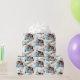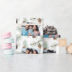 Anpassa och lägg till ditt eget familjefoto på en klassisk jul mönster. Vit bakgrund som dekorerats med bruna koner och gräs träd grenar. Använda ett foto med landskapets storlek.