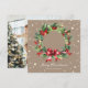 Elegant fotokort för God jul med en vattenfärgad andedräkt av bär, holly, gräs och Conifer träd grenar. Ett foto längst bak. Anpassa det här fotokortet enkelt med ditt helgdag och din familj namn.