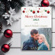 En färglös gräns av röda, grönt och guld träd-dekorationer på vit bakgrund dekorerar överdelen av detta julfotokort. I mitten står anpassningsbarna i rött, grönt och guld. Halvan i grund går i centrum med ditt eget foto. Festiv och smart! Kortets baksida har samma farliga lampa överst gräns och du kan lägga till ytterligare text genom att välja Anpassa den.