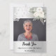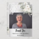Ett modernt Tack-fotokort. En faux silver tittar bakgrund som dekorerats med vit ros, blommor och snöre. Anpassa och lägg till fotot på framsidan och tackkort på baksidan.