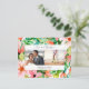 Det här summerade tvåfototacket du vykort har ett starkt och färgstarkt tropiskt tema. Vattenfärgens blommigt omfattar rosa hibiscus, fet rosa och persikoblommor och emerald grönt tropiska löv. Anpassa med två av dina favoritfoton, ett kalligrafimeddelande för anpassningsbar (visas som "kärlek och tack"), ditt namn och ditt bröllop-datum. Lägg till ett längre personligt meddelande på baksidan av vykortet.