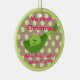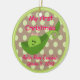 En förtjusande och unik julprydnad för din flicka. En ärta i en pod med en brunt- och gröntpolka pricker ska bakgrund tillfogar ett förtjusande handlag till ditt julpynt. Baksidaen av prydnaden är inramad och klar för din bebis foto. Personifiera texten på bekläda för en underbar minnessak! Gör en underbar helgdag eller baby showergåva. Original- konstverk vid nattuggla Menagerie, 2010.