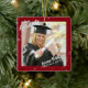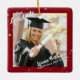 Den här minneshögtiden för prydnadsnamnet stil visar två foton av student...Ett på framsidan med namn, skolan och studenten i ett penselskript med ett EDITABLE RED gräns och med en röd stjärna på framsidan och ett fullt-blekt foto på baksidan med titeln KLASS AV "ÅR". Teckensnittet stil/färg/storlek/placering kan ändras. Ta bort all exempeltext som inte är önskad. Observera att det inte är tillåtet att använda andra dekorerade stilar vid utskrift på baksidan. PHOTO/IMAGE TIP: För snabbaste/bästa resultat väljer du ett foto med subjekt i mitten och/eller förmontera fotot i fyrkantig form före uppladdning. Kontakta designern via Zazzle-Chattan eller makeitaboutyoustore@gmail.com om du vill att designen ska ändras eller på en annan produkt.
