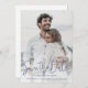 Det här platta bröllop spara datum-fotokortet i chicen har en varm, minimalistisk utformning. Standardkortsformen är vassa hörn av standardtyp, men rundade hörn fungerar också utmärkt med den här designen. Försök därför att både titta i redigeringsläge och se vilka hörn du har. Framsidan har en mycket modern Spara datumtexten ovanför ditt första namn och datum och bröllop. Hela texten på båda sidor är en mörk av blått i eleganten. På baksidan har vi satt bakgrunden som öppen, så att färg från pappra helt enkelt blir som färg. Du kan välja ett färg för bakgrunden om du vill. Du kan också redigera texten till kostym efter behov. Du kanske vill ta bort en text fält som du inte behöver, eller ändra färg eller typsnittet för en text. Använda den intuitiva designen verktyg, ditt favoritfoto och din inspiration för att göra det här platta bröllop spara datum-kortet i snyggt unikt för dig!