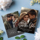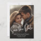 Den här designen har ett datafältkort, perfekt för valfri stil-bröllop, med elegant, klassi, modern minimalistisk, svart och vit stil, med en enkel, 2-fotomall med elegant-, calligraphy-skriptdesign.