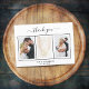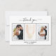 En elegant, enkelt bröllop-tack-kort. personlig med ditt eget foto. Lägg till 3 av Dina bröllop-foton, lodrät storlekt, bröllop-datumet, ditt namn och tackkortet. En vit chic med svart text och ett vitt ram. Texten: Tack på framsidan och namnen på baksidan är skript med snyggt.