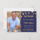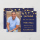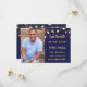 Lägg till ett storlekt foto för lodrät. En marin blå bakgrund färg, dekorerad med faux guld-stjärnor. Anpassa och lägg till ett namn och detaljerna.