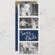 Modern, djärv och contemporary kommer att rädda bröllop-fotot och spara datumkortet designat i en djärv och modern färg-palett med marinblått, kontrasterande vit och faux guld foil elegant inslag och enkla moderna förskönanden. Utformningen har vår vackra, handritade originalbild av teckningen i träd, som skapar en ren, djärv och elegant som ger bröllop-designen i träd. Bröllop-fotot som sparar datumkortet är helt och hållet anpassade med din egen information och dina egna foton. Du kan anpassa texten storlekt, färg, teckensnitt och layout för din egen personliga designinställning för bröllop. Vi har en rad matchande produkter för temat marint blått, vitt, guld nära bröllop.