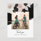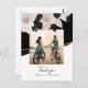 Tack för bröllop-vykortet med ett foto med en svart och vit blommigt med chicens rosa simulerade smyckade blommor.