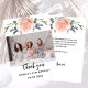 Ett modernt kort och ett tack för eleganten. En vit chic bakgrund. Dekorerad med ro guld och rosa ros, blommigtar blommor och lavender. Svarta och gyllene brev. På framsidan står texten: Tack, namn och ett datum. Tillbaka: Mall för tackkort och namn.